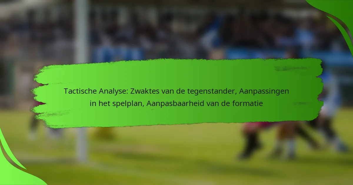 Tactische analyse in de sport richt zich op de kritische aanpassingen tijdens de wedstrijd die door coaches en spelers worden gemaakt om zich aan te passen aan de zich ontvouwende dynamiek van een wedstrijd. Door tactische flexibiliteit te benadrukken, kunnen teams hun strategieën in real-time aanpassen, waardoor ze beter in staat zijn om tegenstanders te weerstaan en zwaktes te exploiteren. Daarnaast is het essentieel om de sleutelrollen van spelers binnen deze kaders te begrijpen, aangezien de bijdragen van elk individu direct invloed hebben op de algehele prestaties en effectiviteit van het team op het veld.