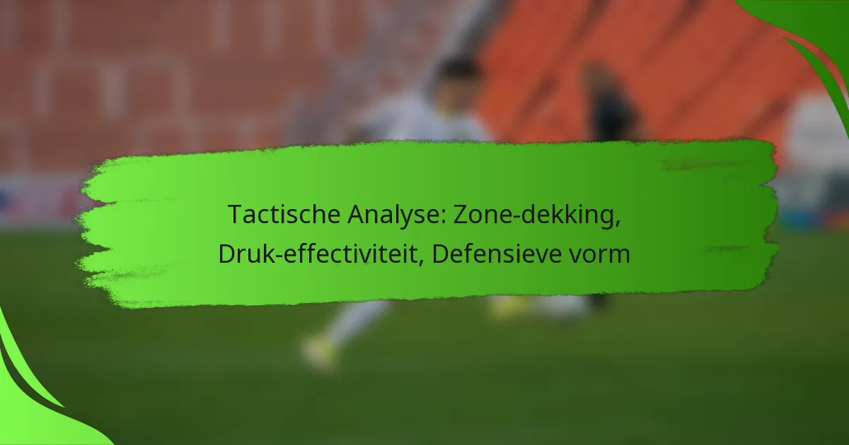 Tactische analyse van defensieve strategieën zoals zone-dekking, effectiviteit van druk zetten en defensieve vorm is cruciaal voor het begrijpen van de prestaties van een team. Zone-dekking stelt verdedigers in staat om spelletjes te anticiperen door specifieke gebieden te dekken, terwijl de effectiviteit van druk zetten de agressiviteit van de betrokkenheid bepaalt wanneer men de bal niet heeft. Bovendien verbetert een sterke defensieve vorm de communicatie en organisatie, waardoor teams zich kunnen aanpassen aan tegenstanders en scoringskansen kunnen minimaliseren.